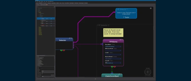 Les équipes IA sociale et narrations ont travaillé ensemble pour améliorer l’expérience Star Citizen. Cela consiste à parcourir les lieux pour identifier et nettoyer les comportements existants, et en ajouter de nouveaux. Certains des comportements proviennent de Squadron 42 et d’autres seront développés spécifiquement pour l’univers persistant.