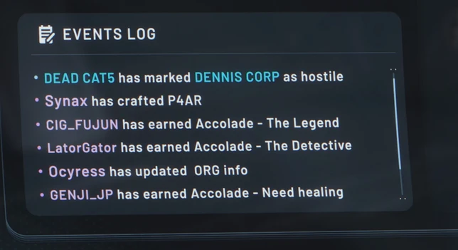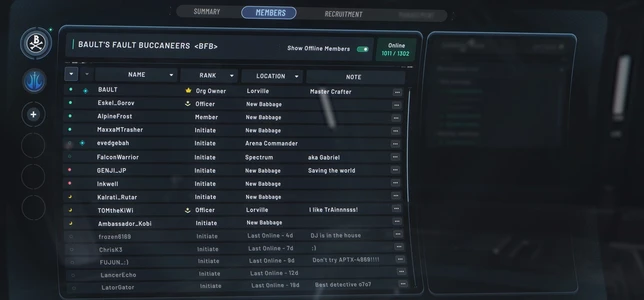 De nombreuses informations liées au jeu y seront visibles. L’état (mort, déconnecté, etc), le vaisseau dans lequel les joueurs sont répartis, jusqu’au siège qu’ils occupent dans le vaisseau (pilote, copilote, tourelle, etc) ! Les développeurs le présentent comme un “mini gestionnaire de flotte”.