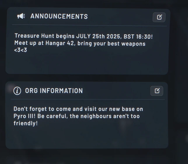 Les développeurs ont créé une application sociale pour le mobiglass. Elle permet de mieux refléter les amitiés liées au jeu et les joueurs que l’on fréquente régulièrement. Elle s’apparente à un système de contact avec des informations en temps réel et synchronisées entre le jeu et les autres applications de CIG.