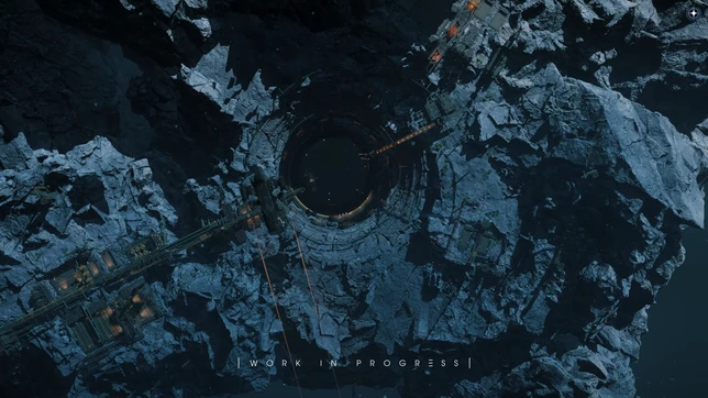 L’astéroïde sur lequel est installé la station est creusé, et des infrastructures tentaculaires partent depuis cette cavité.