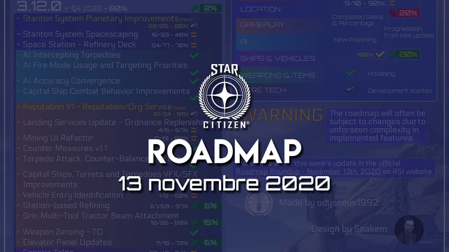 Chronique hebdomadaire consacrée à la mise à jour de la feuille de route de Star Citizen du 13 novembre 2020.