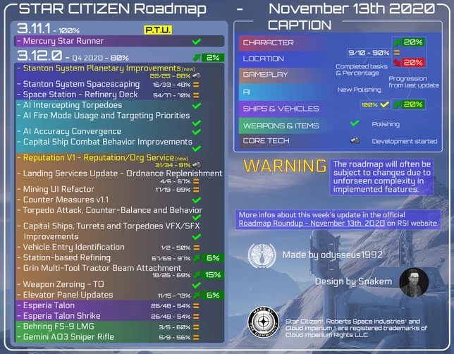 Roadmap Star Citizen – Mise à jour du 13 novembre 2020