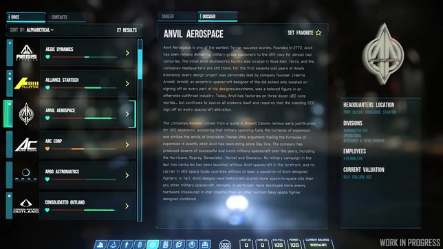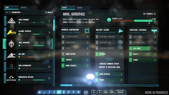 Cette fonctionnalité donnera aux joueurs un aperçu de leur réputation auprès des PNJ et des organisations importantes avec lesquelles ils ont interagi. Elle comprendra également une liste complète des grades de réputation, y compris ceux qui ont été complétés et ceux sur lesquels ils travaillent activement.