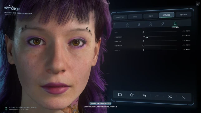 Des piercing peuvent être ajoutés aux oreilles, aux narines et à la lèvre inférieure. Les anneaux seront implémentés ultérieurement car ils représentent un défi technique.