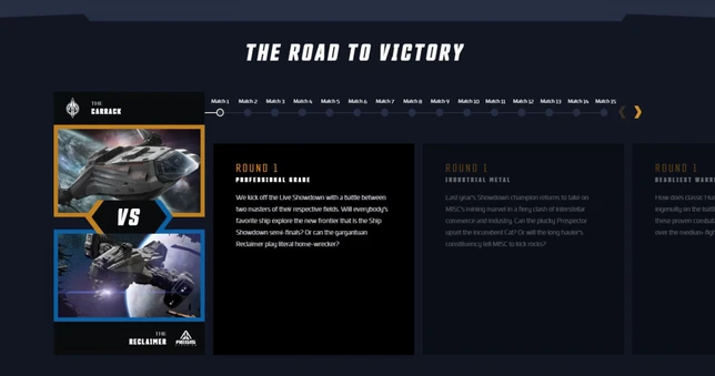 Les 16 vaisseaux les plus plébicités par la communauté se sont ensuite affrontés lors de la phase 2 qui consistait en un tournoi en élimination directe, qui a finalement été remporté par l’Anvil Carrack. Les quatre derniers vaisseaux recevront des livrées et des t-shirts ingame qui seront dévoilés à l’IAE plus tard dans l’année. Un Free Fly de deux semaines a accompagné la deuxième phase, durant laquelle les 16 premiers vaisseaux ont été mis gratuitement à la disposition de tous.
