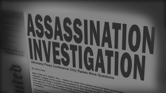 Pour résumer, la nouvelle est apparue lors d’un Empire Report qui a révélé que des coups de feu avaient été tirés sur l’Imperator Costigan durant le Sommet de la Fédération Bancaire à New York. L’Imperator Costigan s’en est sorti indemne, mais un membre de son service de sécurité, le 1er bataillon de combat d’élite des Marines, a été tué et plusieurs autres Marines et civils ont été blessés lors des échanges de tirs. Deux semaines plus tard, l’Advocacy a tenu une conférence de presse au cours de laquelle elle a identifié Maurice Vano comme l’assaillant. Elle n’a pas révélé grand-chose d’autre que le nom de Vano et que son organisme contenait une importante quantité d’e’tâm, une drogue xi’ane connue pour produire des effets secondaires intenses et dangereux chez les humains. Une enquête de New United sur Vano a révélé qu’il s’agissait d’un ancien stellaire de la Navy devenu mercenaire et lié à plusieurs organisations xénophobes. La tentative d’assassinat s’est produite en plein débat sur l’Initiative commerciale Humain-Xi’an (HuXa), ce qui a conduit certains à penser que le soutien de l’Imperator Costigan à HuXa a motivé l’attaque de Vano.
