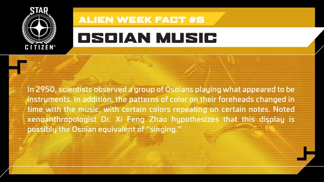 En 2950, des scientifiques ont observé un groupe d’Osoïens en train de jouer de ce qui semblaient être des instruments. En outre, les motifs de couleurs sur leurs fronts changèrent en rythme avec la musique, certaines couleurs se répétant sur certaines notes. Le Dr. Xi Feng Zhao, illustre xéno-anthropologue, émit l’hypothèse que ce comportement s’apparenterait chez les Osoïens à du “chant”.