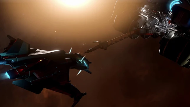 Une fois que vous avez réussi à héler un vaisseau de ravitaillement vers votre position, ciblez-le (touche par défaut “T”) et demandez à vous amarrer (touche par défaut “N”). Le vaisseau de ravitaillement doit alors approuver la demande et déployer sa perche de ravitaillement. À ce stade, vous pouvez vous amarrer manuellement au bras en alignant l’ATH, ou vous pouvez maintenir la touche de demande d’amarrage pour le faire automatiquement.