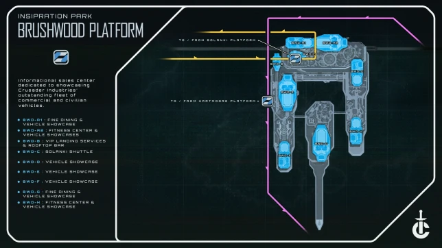 Crusader utilise principalement la plate-forme Brushwood pour faire la démonstration de vaisseaux commerciaux et civils au secteur privé. La bonne nouvelle est que Crusader a autorisé la CDF à réquisitionner tous les vaisseaux dont elle a besoin pour récupérer Inspiration Park.