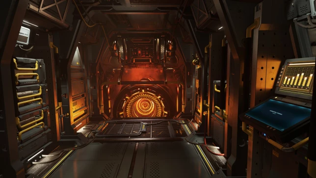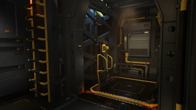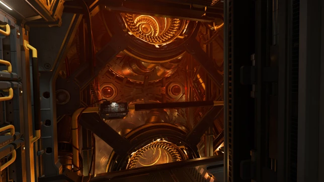 Au fond de la soute, une échelle mène au pont intermédiaire, qui abrite la partie inférieure de la salle d’ingénierie. L’étroitesse du Clipper a conduit les développeurs à scinder cette dernière en deux étages, reliés par une petite trappe permettant de transférer les composants. L’ensemble a été pensé pour donner une impression de chaleur, de transpiration : de l’éclairage au son en passant par les parties mouvantes, tout a été fait pour transmettre au joueur la sensation d’être “au cœur de la machine”.