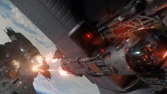 Les combattants embarqués dans le Starlancer TAC peuvent sortir par les portes latérales en étant protégés par des armes en appui.